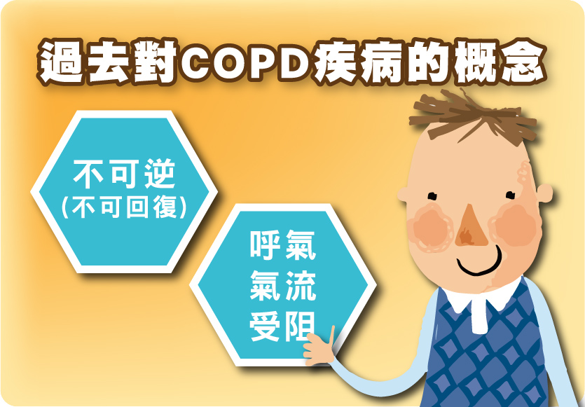 過去認為COPD是不可逆(或不可回復}的疾病,因為這個疾病會造成不可逆性的呼氣氣流受阻,永遠無法恢復